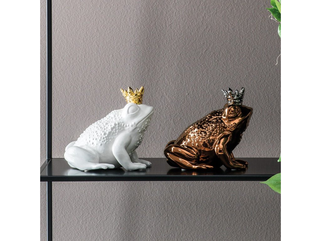Žabák z glazované keramiky v bílé nebo růžovozlaté oxydové barvě.