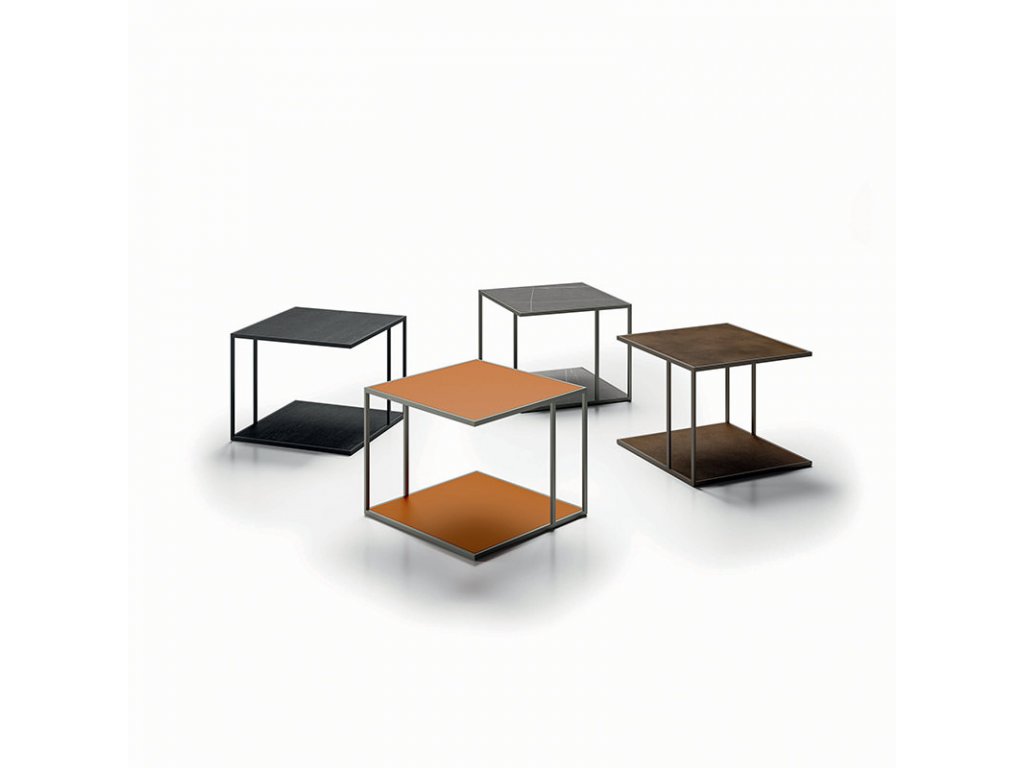 Track je čtvercový konferenční stolek se dvěma překrývajícími se deskami dostupném ve všech povrchových úpravách Dall’Agnese nebo kamenině.