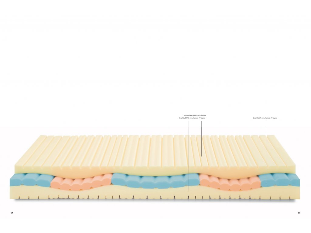 Tato evoluční pěnová matrace má vícezónovou strukturu. To znamená, že nabízí jednotnou podporu, protože využívá viskoelastické pěny s paměťovým efektem s postupným návratem. Zvyšuje pohodlí během spánku a nabízí podporu přesně tam, kde je to nutné.