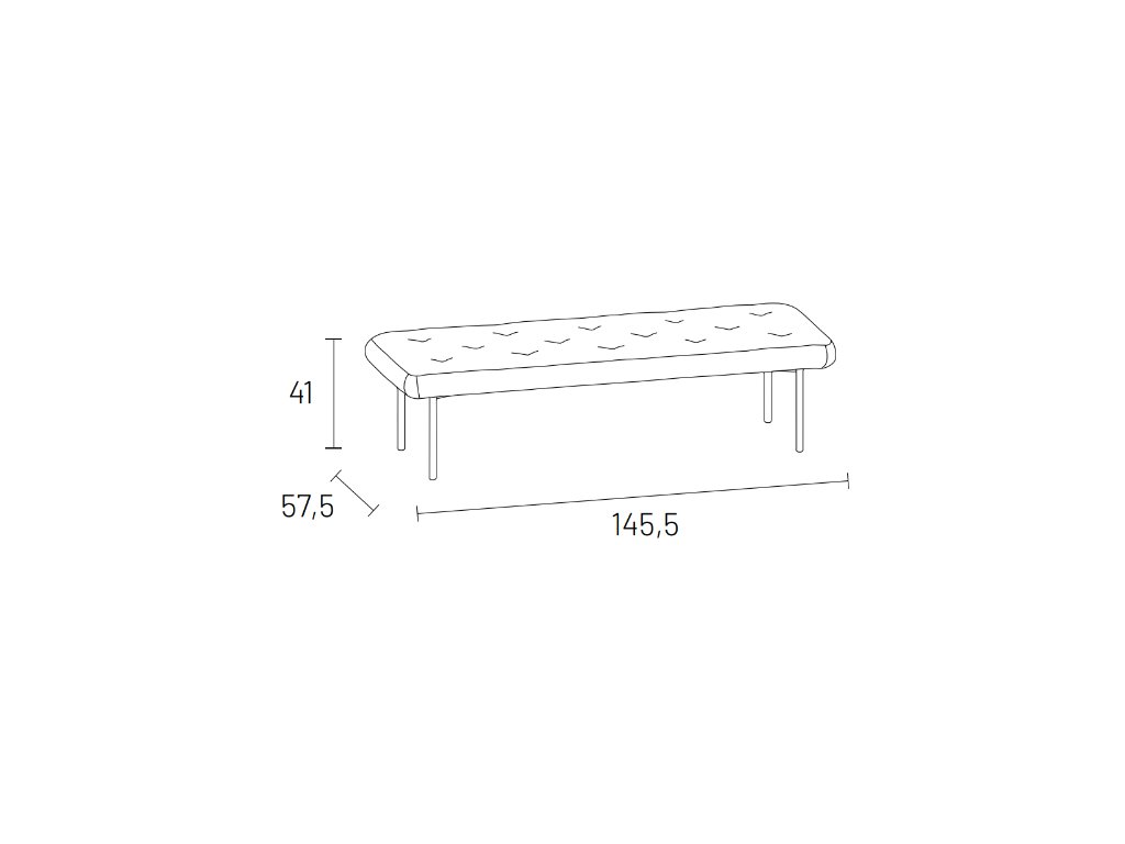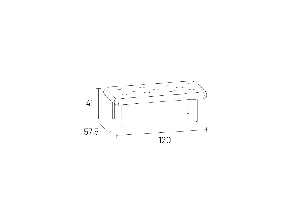 Jedná se o capitonné lavici s kovovými nohami a sedákem ve dvou délkách. K čalounění látkou, kůží nebo ekokůží.