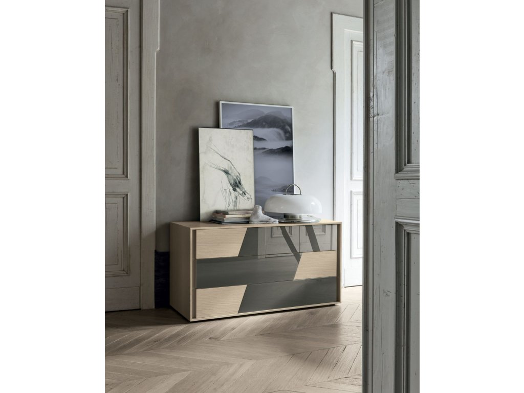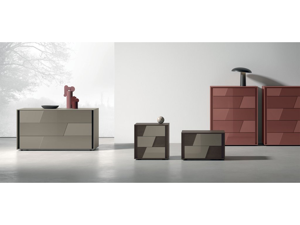 Diagonální řezy a vertikální rukojeť jsou charakteristické rysy extrémně geometrické a moderní skupiny. Je toho víc, přední strany odpovídají povrchům a barvám, aby ještě více zdůraznily design.