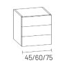 Noční stolek se 3 zásuvkami: 45-60-75 x 45 x 45