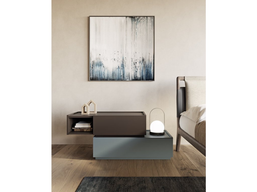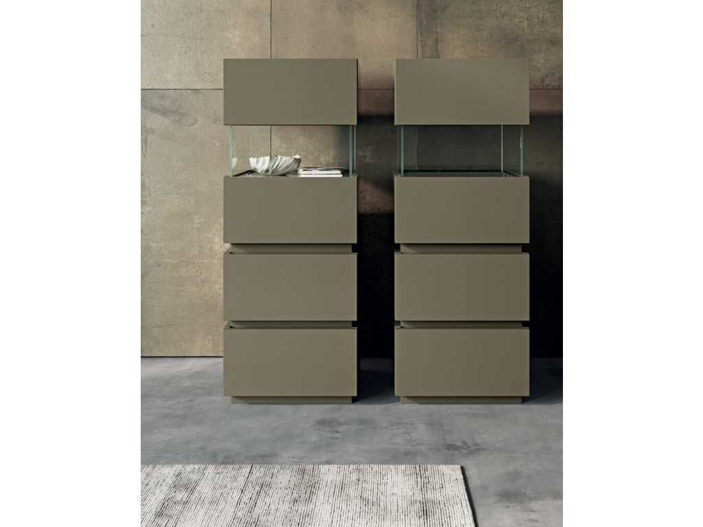 Ať už jde o jednoduchou nebo originální ložnicovou sestavu s odstupňovanými horními deskami nebo prostornou s několika naskládanými moduly, nebo o nízký nebo vysoký noční stolek nebo jakoukoli jinou kompozici, Super má řešení, které potřebujete. Aby byl jedinečný, prosklené otevřené přihrádky a desky vyrobené ze dřeva, hladkých nebo speciálních laků, kameniny a zrcadel ve standardních, kouřových nebo bronzových barvách.