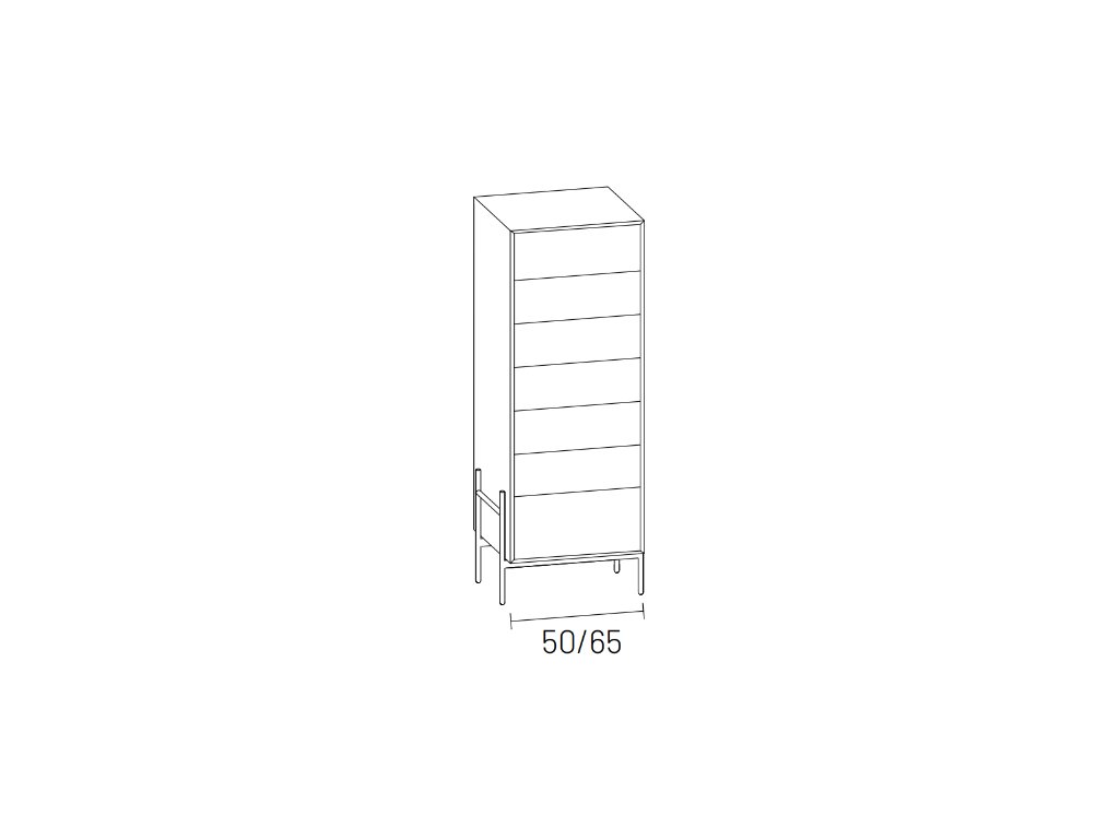 Věžová komoda se 6 zásuvkami: 50-65 x 127.5 x 45
