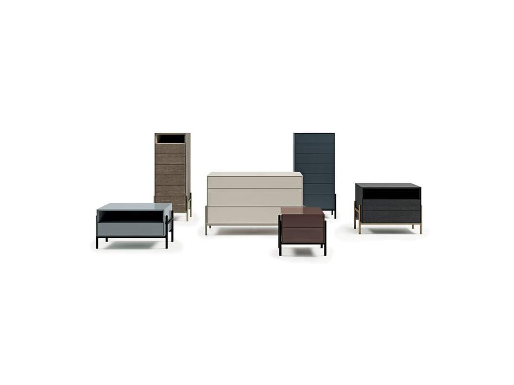 Noční úložné jednotky Supernova kombinují svou nezaměnitelnou lakovanou tyčovou základnu se zásuvkami v lineárních tvarech, s elegantními a jednoduchými 45° spoji. Úložné prvky objímá kovový rám, který se po stranách zvedá do stran.